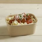 Χάρτινο kraft παραλληλόγραμμο δοχείο για μαγειρευτά φαγητά, χωρητικότητας 500ml από υλικό υψηλής ποιότητας, κατάλληλο για take away & delivery ζεστών & κρύων πιάτων. Ιδανικό για συσκευασία μαγειρευτών & λαδερών. Προϊόν κατάλληλο για χρήση σε φούρνο μικροκυμάτων. Διαθέτει όλα τα απαραίτητα πιστοποιητικά καταλληλότητας για επαφή με τρόφιμα. Συνδυάζεται με πλαστικό ίσιο καπάκι.